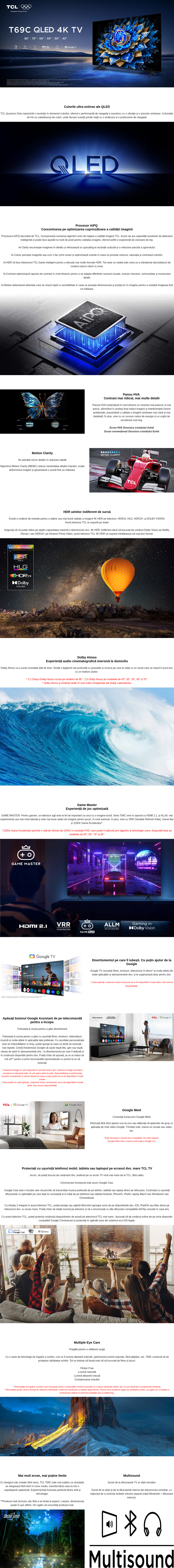 Televizor LED TCL QLED 43T69C, Ultra HD, Smart, USB, HDMI, diagonala 43 inch/108 cm, tuner digital DVB-T2/C/S2, negru